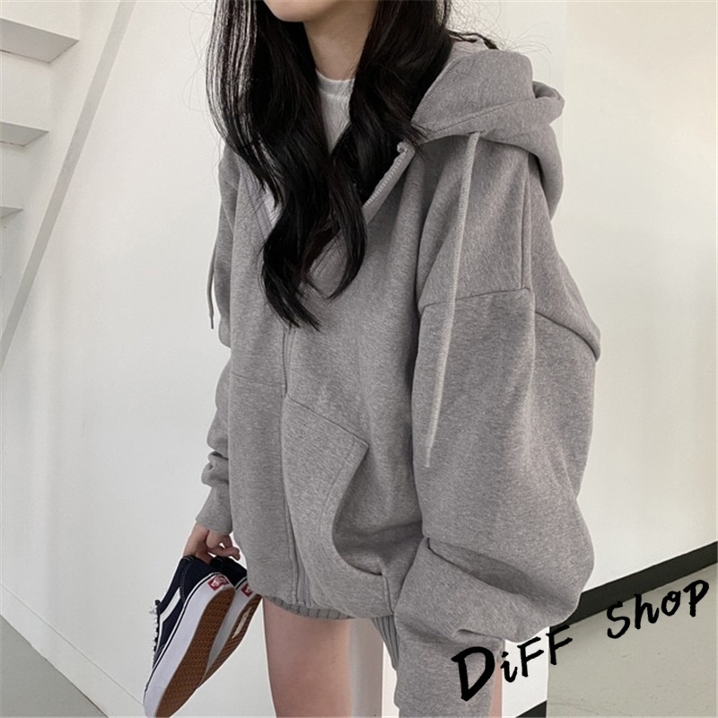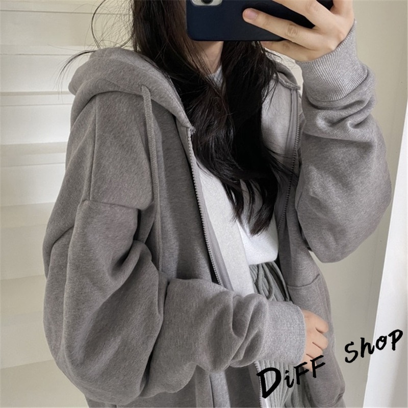【DIFF】韓版寬鬆休閒內刷毛連帽外套 上衣 女裝 衣服 外套 薄外套 罩衫 防曬外套 長袖上衣【J32】