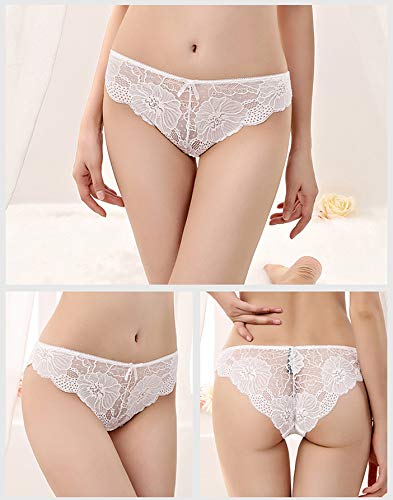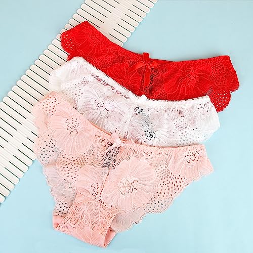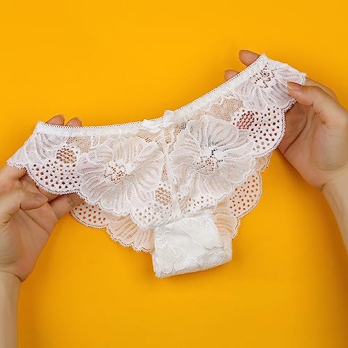 KELITCH Women's Briefs Scalloped Lace Hipster Thong Panties Bow Sexy Underwear