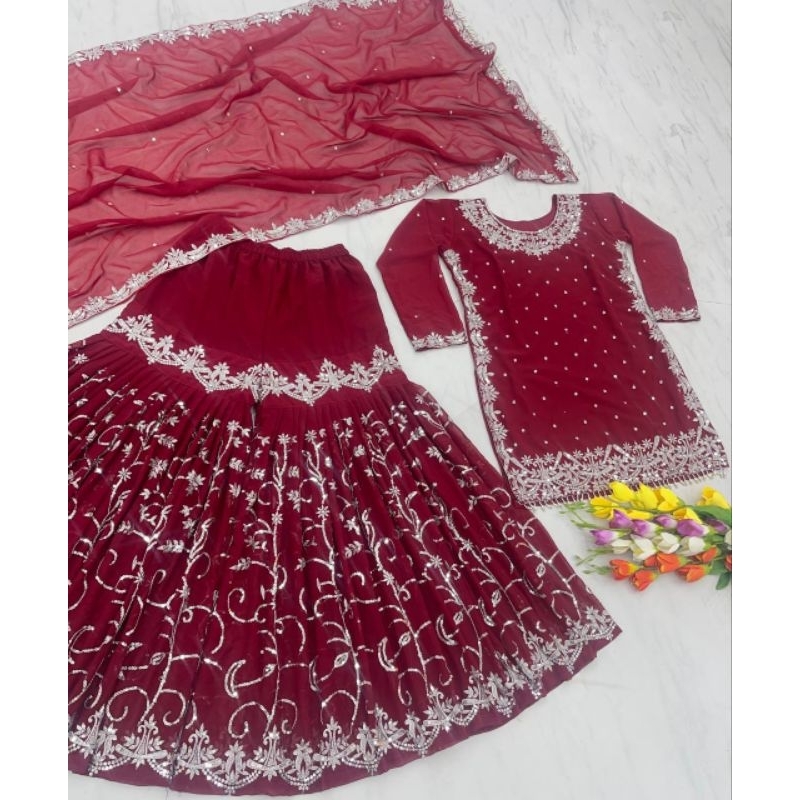 Added new colours *Ready to wear* -3 piece set (kurti+Plazzo+dupatta) designer sharara suit