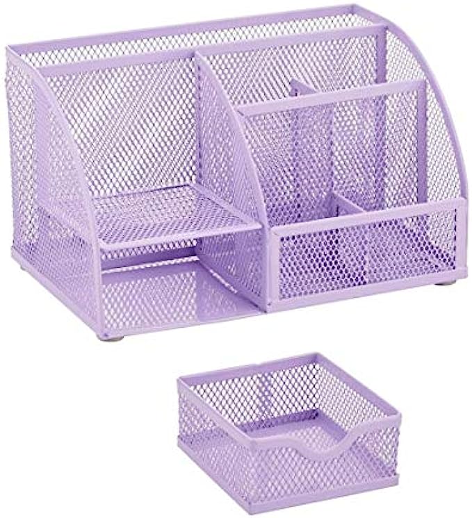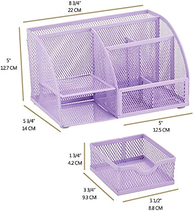 Compartments are in various size and shape - easy to keep pens, sticky notes, paper clips etc all in one place while the compartment in the back can store notepad size up to 8.5 inches x 11.75 inches; also good for organizing makeups and small household items.