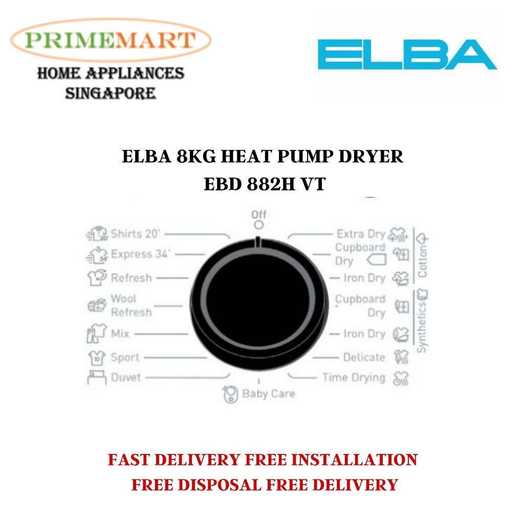ELBA 8KG EBD 882H VT HEAT PUMP DRYER *MADE IN EUROPE* FREE DELIVERY FREE INSTALL AND DISPOSE - 2 YEARS LOCAL WARRANTY