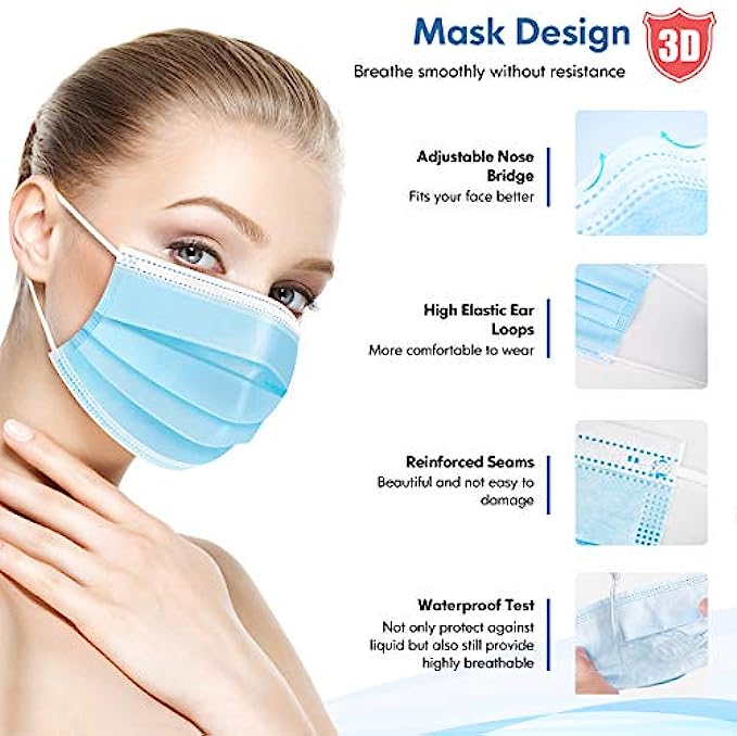 • 3D Disposable Mask Design: The professional disposable face mask fits the contours of the face in all aspects, which has adjustable nose bridge, fits your face better, breathe smoothly without resistance. Perfect for adults, men, women