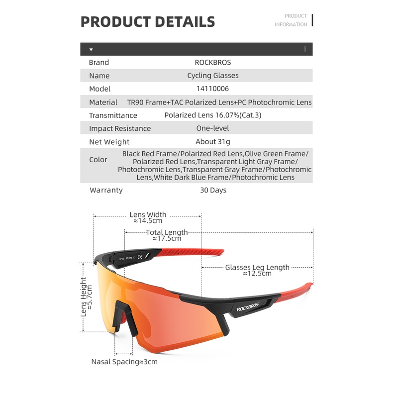 ROCKBROS Cycling Glasses Photochromic Polarized Built-in Myopia Frame Men Women Windproof Bicycle Outdoor Sports Glasses