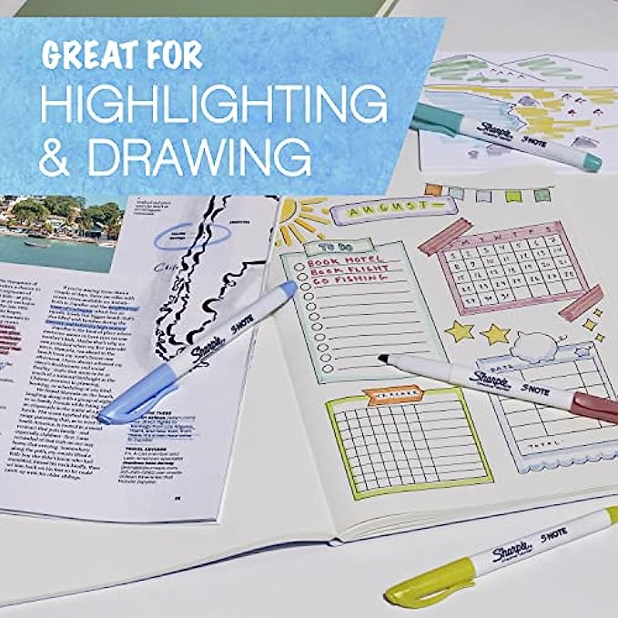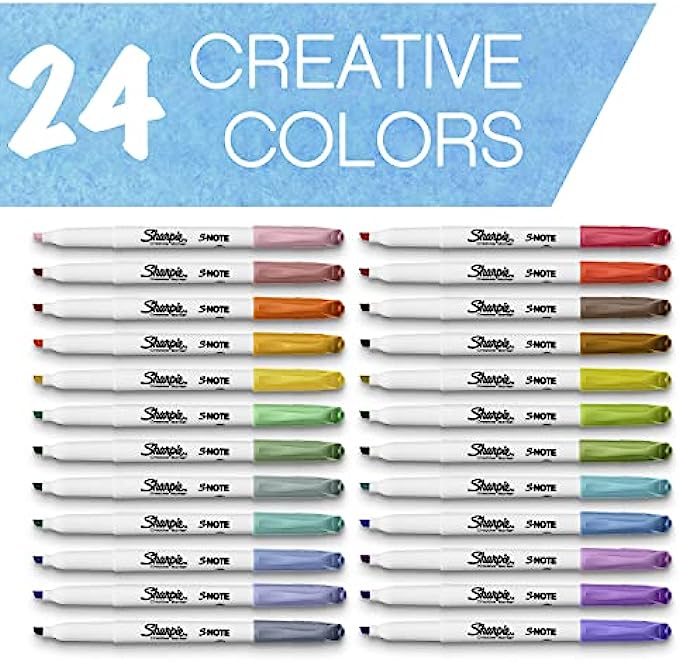 Sharpie S-Note Creative Markers, Highlighters, Assorted Colors, Chisel Tip, 24 Count