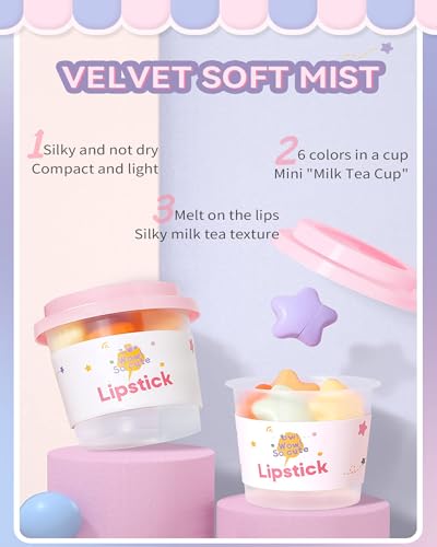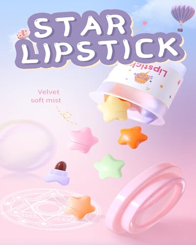 AKARY 6 Colors Cute Star Lipstick: The mini lip stick set contains 6 beautiful classic candy colors, silky and not dry, compact, and light, which is a gospel for girls with difficulty in choosing. It's awesome to be able to have glamorous lips of different colors every day for one week! The best choice to meet the various makeup needs of different occasions.