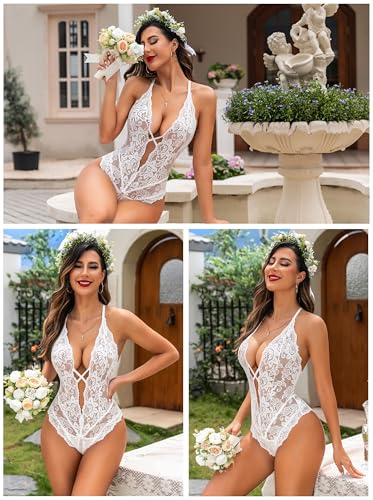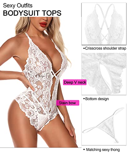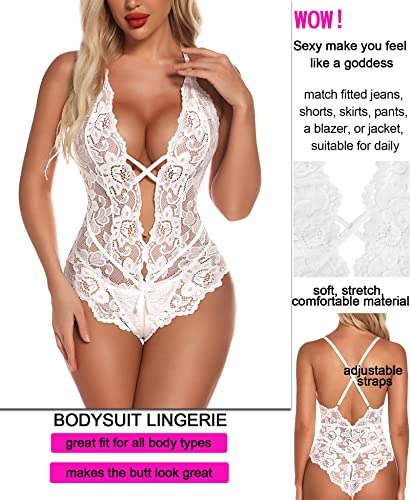 Aranmei Sexy Lingerie for Women Lace Teddy Bodysuit Deep V Cut Out Matching Panty Underwear