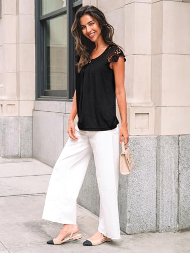AUTOMET Womens Lace Tops Pleated Short Sleeve Shirts Summer Business Casual Dressy Blouses