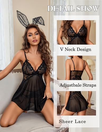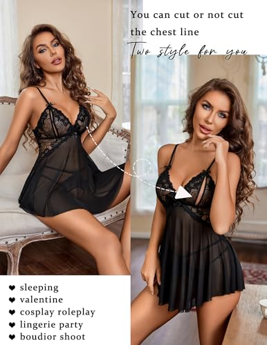 Avidlove Sexy Lingerie for Women Lace Babydoll Chemise V Neck Mesh Nightwear Boudoir Outfits