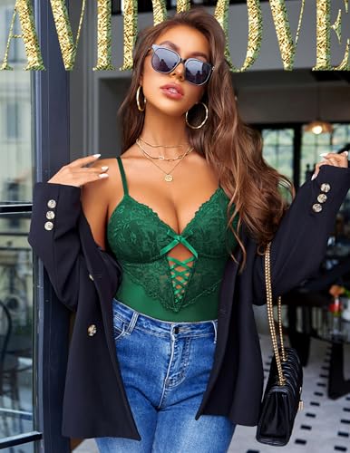 Avidlove Lingerie for Women Lace Bodysuit Teddy V Neck One Piece Mini Babydoll Sleepwear
