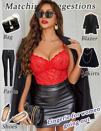 Avidlove Lingerie For Women Lace Bodysuits Deep V Teddy One Piece Mini Babydoll Outfits S-XXL