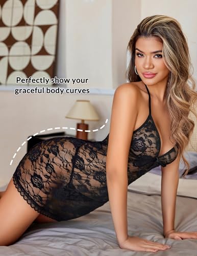 Avidlove Lingerie for Women Sexy Lace Babydoll Dress Halter Nightgown V Neck Sleepwear