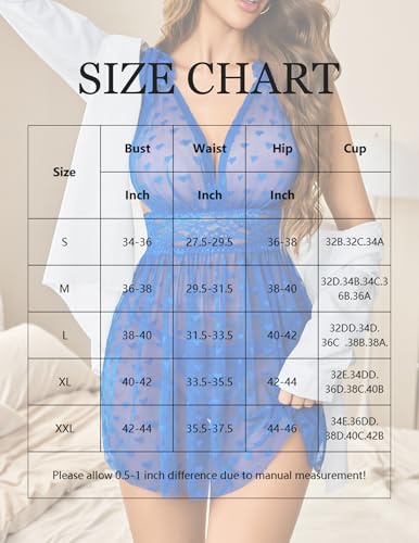 Avidlove Lingerie for Women Sheer Mesh Lace Babydoll Chemise V Neck Sleepwear Nighty Sexy Boudoir Outfits S-XXL