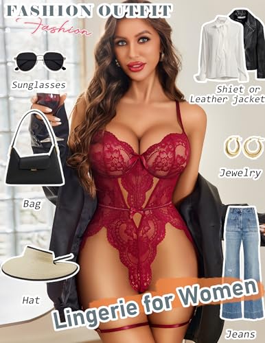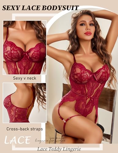 Avidlove Womens Lingerie Floral Lace Bodysuit Cross-Back Straps Teddy One Piece Babydoll S-XXL