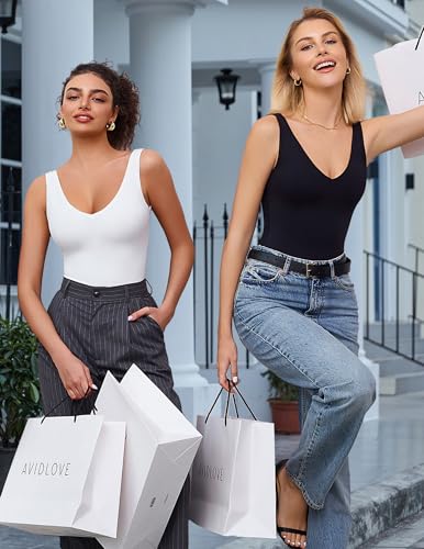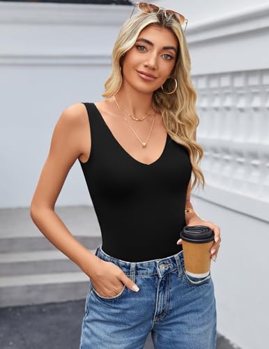 Avidlove Women's Sexy Plunge Deep V Neck Bodysuit Double Lined Sleeveless Thong Body Suit Leotard for Going Out Tank