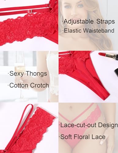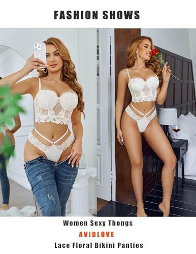 Avidlove Womens Underwear Cotton Thongs Sexy Lace Bikini Panties V Shape Waistband Tangas 1-4 Packs