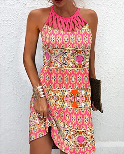 BIRW Summer Dresses for Women 2025 Casual Floral Halter Neck A-line Beach Vacation Sundresses with Pockets