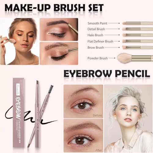 ??What's in the Makeup Set???1 x 10 colors eyeshadow palette, 1 x waterproof and smudge-shield mascara, 1 x waterproof and smooth liquid eyeliner, 1 x brown eyebrow pencil, 1 x 6 pcs soft makeup brush set, 1 x lip gloss. Our eyeshadow palette's expertly curated shades are perfect for shading, highlighting, and defining eyes, brows, and the contours of the face.