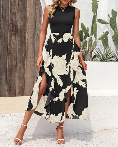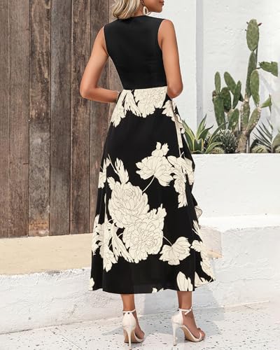 BTFBM Women Casual Sleeveless Summer Dresses 2025 Spring Crewneck Patchwork Boho Floral Ruffle Cocktail Party Midi Dress