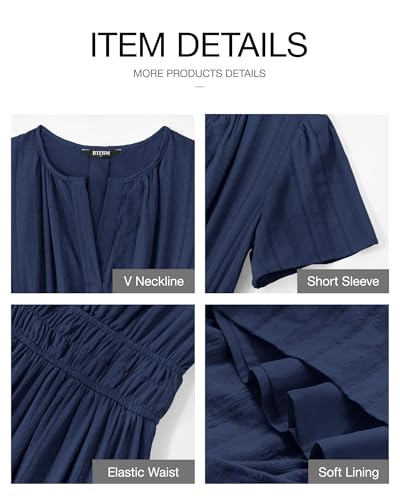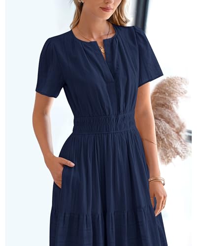 BTFBM Womens Summer 2025 Casual Midi Maxi Dresses Lightweight Short Sleeve V Neck Elastic Waist Boho Beach Dress Pockets