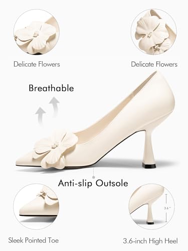 Coutgo Womens Stiletto High Heels Flower Dress Shoes Closed Pointed Toe Slip on Wedding Party Formal Pumps