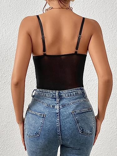 COZYEASE Women's Lace Bustier Cami Bodysuit Plain Sleeveless Slim Fit Sheer Mesh Corset Top Romper