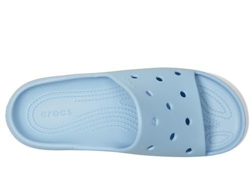 Elevate your casual style wearing the Crocs Classic Slide 2.0. Size down a full size. If you are a size 8 normally, please order a size 7. Slip-on construction. Brand detailing on the footbed. Open round toe design. Thermoplastic midsole and outsole. Deep cupped Croslite foam footbed. Imported.