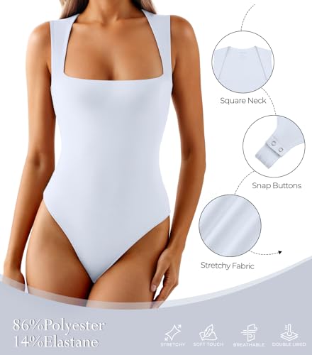 Cyanstyle Women Sexy Square Neck Thong Bodysuit Double Lined Sleeveless Trendy Going Out Body Suits Tank Tops