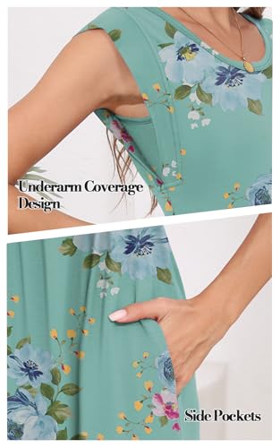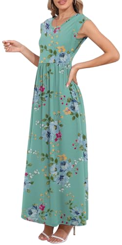 DB MOON Womens 2025 Maxi Dresses Empire Waist Long Summer Dress Casual Cap Short Sleeve Sundress with Pockets