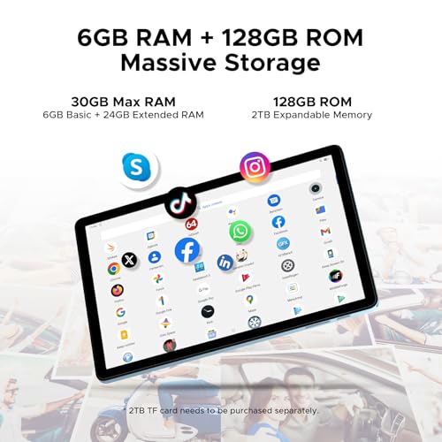 ?????????? ?????? + ?????????? ?????? & ?????? ???????????????????? ????????????????The DOOGEE Tab A9 Pro+ Android 15 tablet delivers powerful performance with 30GB RAM (6GB physical + 24GB virtual) and 128GB of fast storage for effortless multitasking, app launching, and file handling. Need more room? Expand up to 2TB via microSD card to store all your movies, games, documents, and photos. With the built-in Memory Manager, you can easily free up space by removing junk files, duplicates, large downloads, and more??ensuring your tablet runs smoothly at all times.