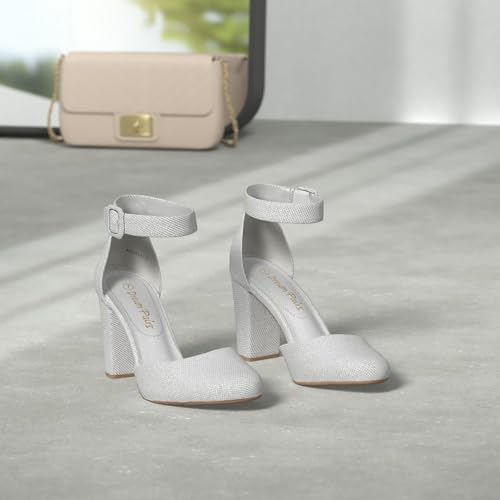 DREAM PAIRS Women's High Heel Ankle Strap Closed Toe Chunky Wedding Pumps Shoes