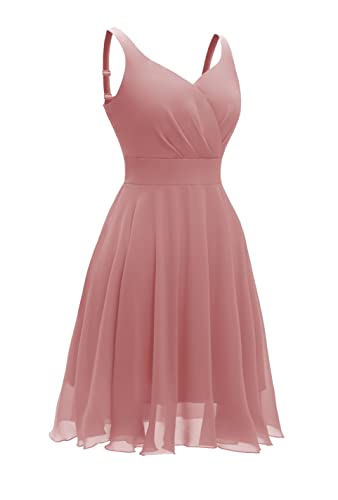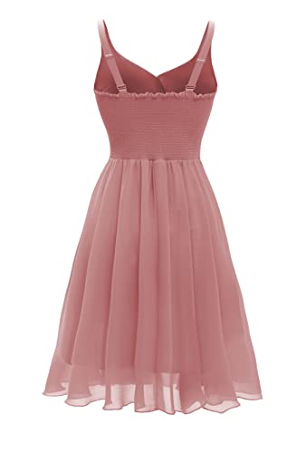 Dressever Summer Cocktail Dress V-Neck Adjustable Spaghetti Strap Chiffon Sundress