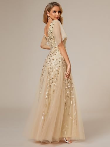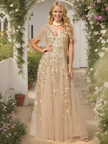 Ever-Pretty Women's Sequin Sparkly V-Neck Short Sleeve Maxi Evening Dress 00734
