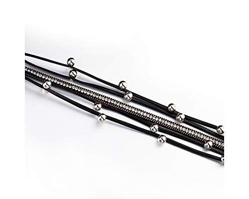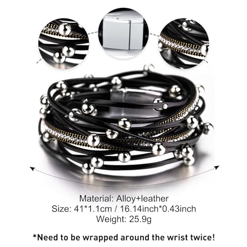 Fesciory Leather Wrap Bracelets for Women, Boho Leopard Multi-Layer Crystal Beads Cuff Bracelet Jewelry
