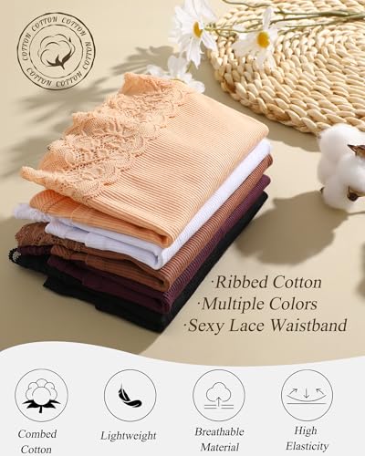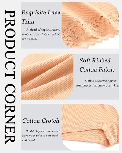 FINETOO Cotton Underwear for Women Boy Shorts Lace Boxer Briefs Soft Full Coverage Womens Panties 5 Pack S-XXL