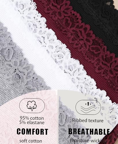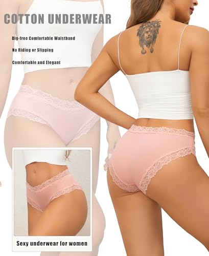 FINETOO Womens Underwear Cotton Bikini Underwear for Women Lace Wasit Hipster Panties Soft Breathable Briefs 6 Pack