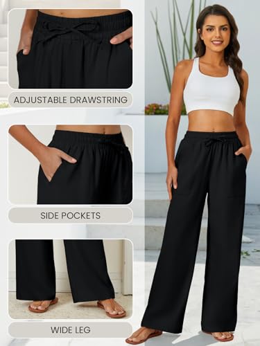 FireSwan Womens Palazzo Pants Casual Drawstring Flowy Pants Wide Leg Summer Beach Linen Trousers with Pockets