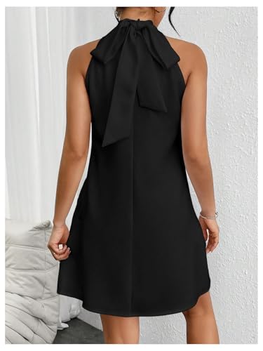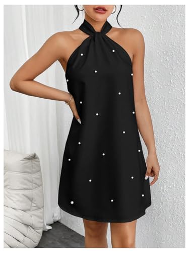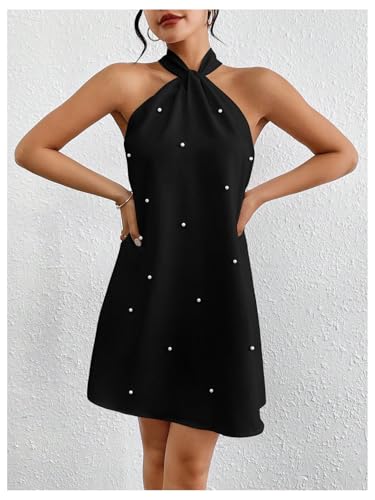 Floerns Women's Pearl Beaded Halter Twist Sleeveless Tie Back Dress A Line Dress