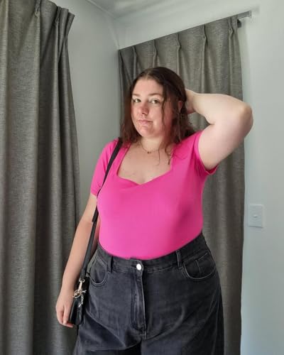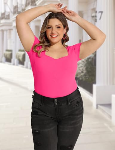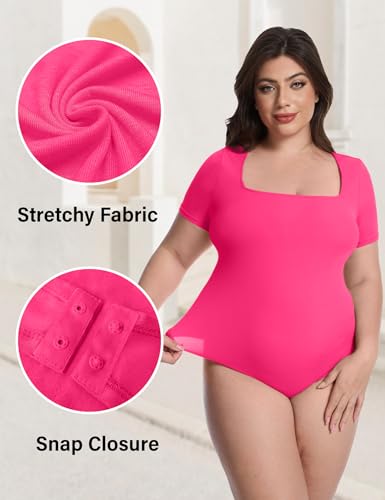 FOREYOND Plus Size Bodysuit for Women Short Sleeves Square Neck Body Suit Tops Casual Basic Slim Fit Shirts Leotards