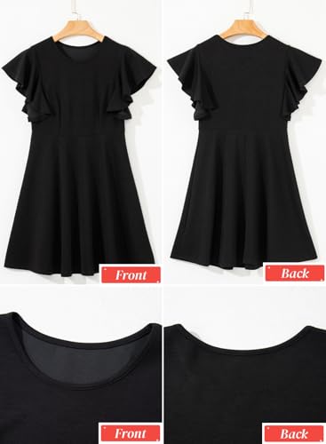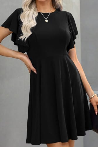 Happy Sailed Cocktail Dresses for Women Spring Summer Ruffle Sleeve Crewneck High Waist Flowy A Line Mini Dress
