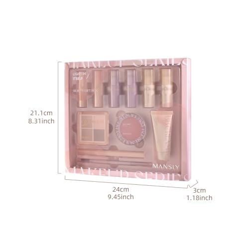 ??Makeup Set Contents??:This makeup set contains a variety of shades and styles, allowing you to find the makeup that suits you best. The sall in one makeup kit includes: velvet lipstick*4, blush*1, eyeshadow*1, eyebrow pencil*1,Concealer*1, the sweetest gift for your loved ones.