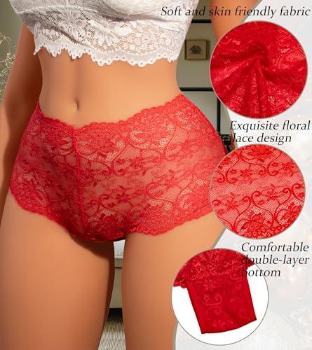 Hibluco Sexy Women Underwear V Waist Lace Boy Shorts High Rise Cheeky Panties