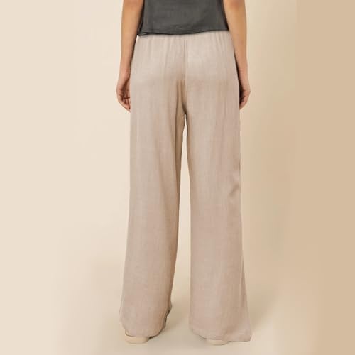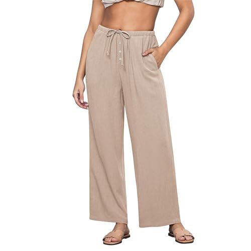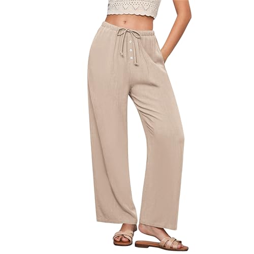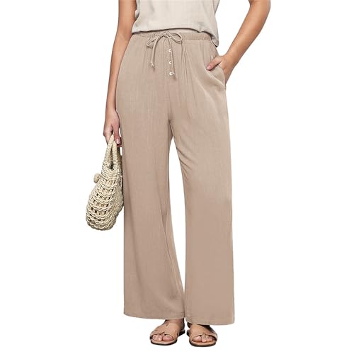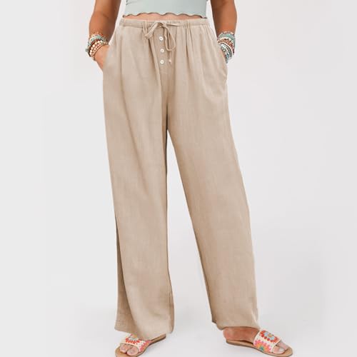 Hixiaohe Womens Linen Pants Summer Flowy Palazzo Trousers Casual Loose Wide Leg Pants High Waist Drawstring Beach Outfits