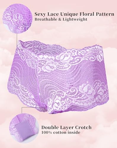 Jaywan Lace Underwear for Women Sexy Panties Womens Seamless Cheeky Underwear Breathable No Show Bikini Hipster 5 Pack