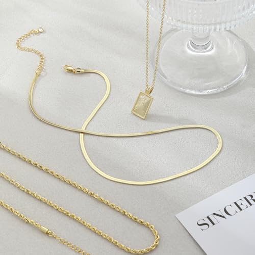 Layered Gold Silver Necklaces for Women, Stackable Stack 14K Real Gold Plated Silver Chain Necklace Diamond Circle CZ Layering Pendant Necklaces Trendy Gold Jewelry Set Gifts
