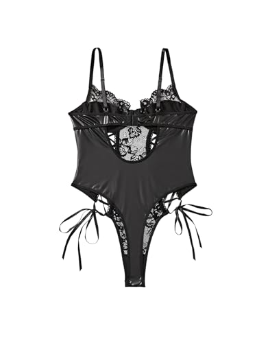 Lilosy Sexy Floral Lace Push Up Underwire Tie Drawstring Teddy Bodysuit Lingerie