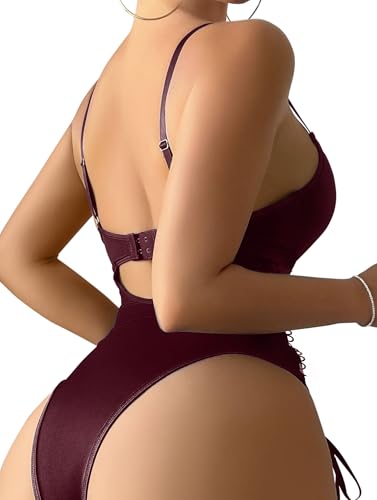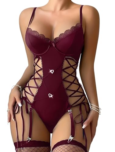Lilosy Sexy Floral Lace Up Belt Garter Underwire Teddy Bodysuit Lingerie Set