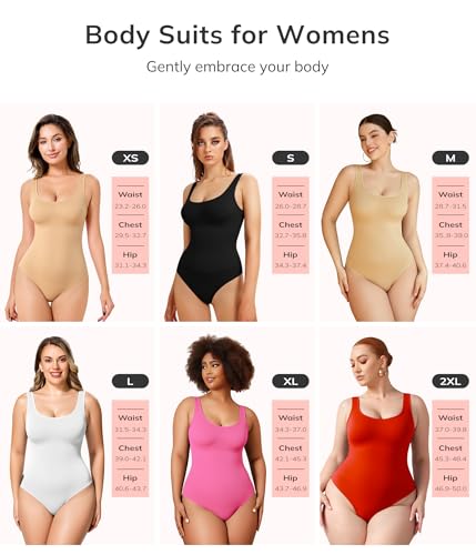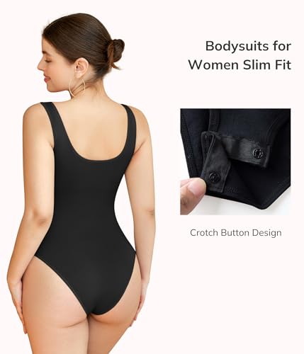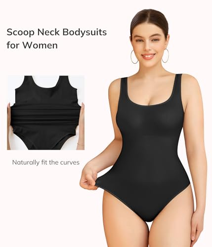 LODAY Bodysuits for Women Scoop Neck Body Suits Sleeveless Double Lined Bodysuit Tank Top
