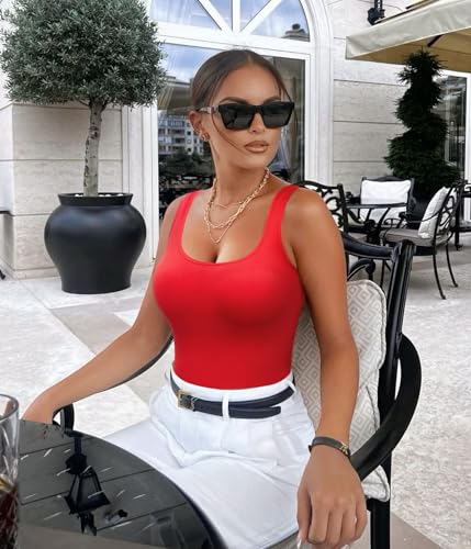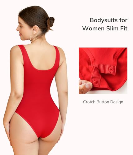 LODAY Bodysuits for Women Scoop Neck Body Suits Sleeveless Double Lined Bodysuit Tank Top