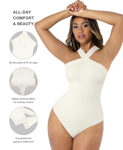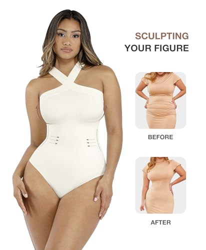 Lover-Beauty Women Shapewear Bodysuit Tummy Control Halter Bodysuit Thong