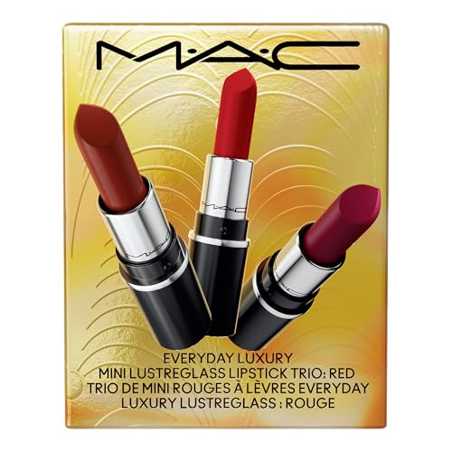 A limited-edition mini Lustreglass Sheer-Shine Lipstick trio in red colour waves, each featuring three shiny new shades. Our Lustreglass Sheer-Shine Lipstick formula delivers sheer and shiny colour with a long-wearing, lustrous finish. Ready to gift in holiday-exclusive gold-toned packaging at a gold star value.